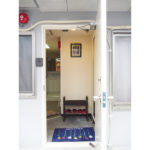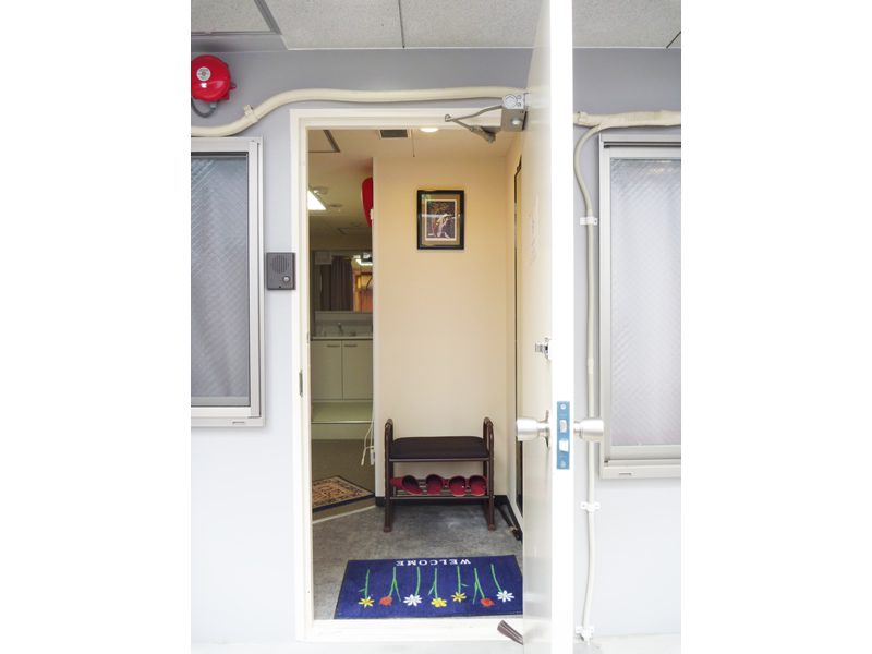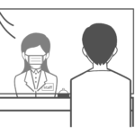 At the front desk, splash prevention partition are installed and coin trays are used to transfer money.